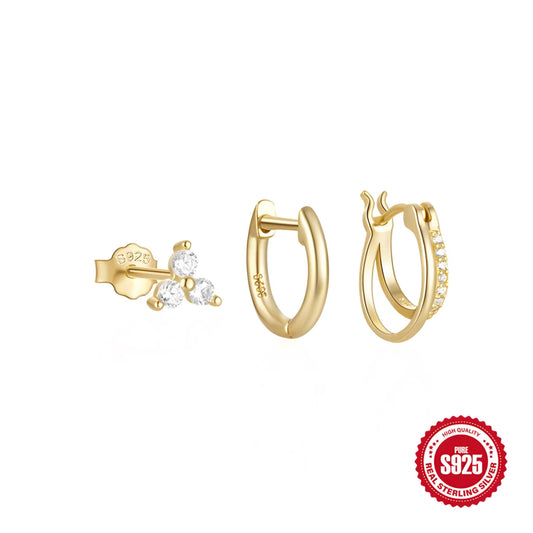 3pcs/Set Double Loop Zircon Earring