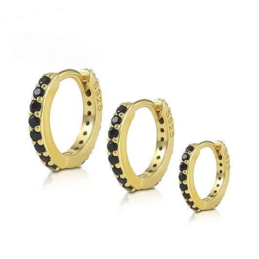 3pcs/Set 3 Black Zircon Hoop Earrings