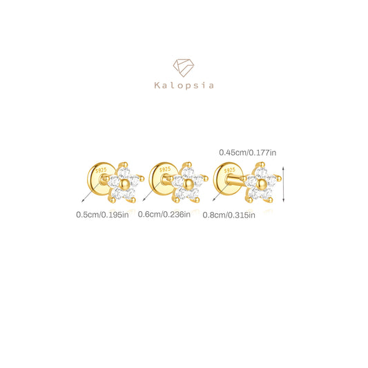 3pcs/set Flat Flora Stud Earring Piercing