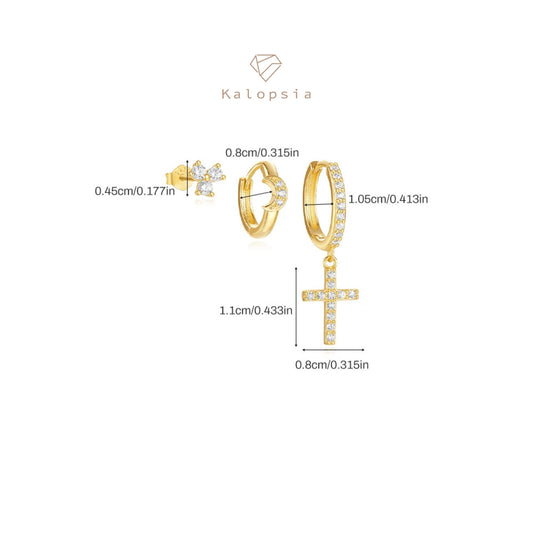 3pcs/set Cross Hoop Stud Earring set