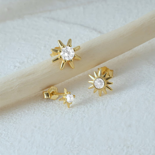 3pcs/set Flat Clear Zircon Stud Earring